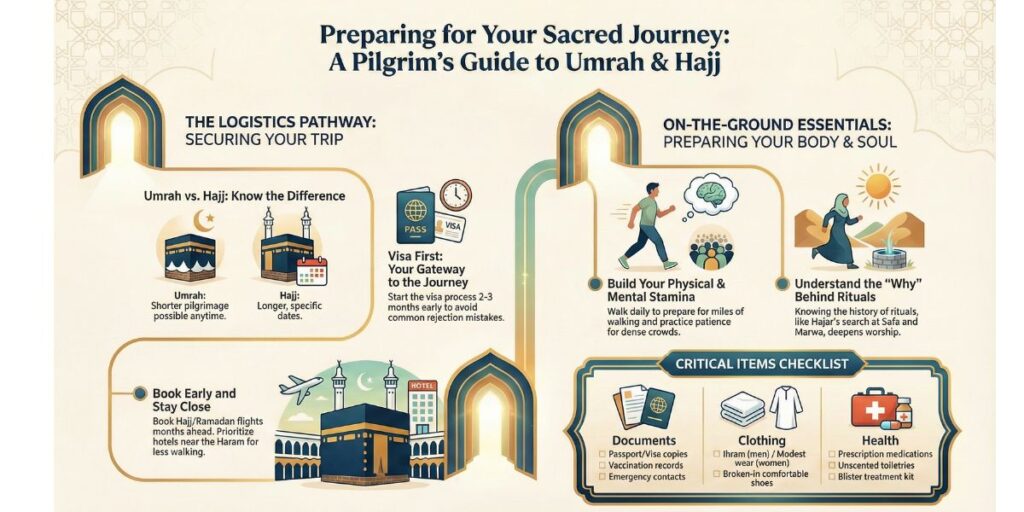 Preparing for Umrah or Hajj is one of the most meaningful journeys you’ll ever take. But many first-time pilgrims feel confused about where to start, what documents they need, or how to handle the physical and spiritual demands of the trip.